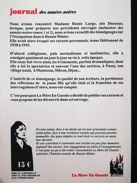 Les Editions de La Mère en Gueule ont édité des ouvrages originaux en 2005 et 2006 : »Mémoires des Années Noires » – tomes 1 et 2 : témoignages recueillis auprès de 48 témoins de l’époque 39/45 et »Journal des Années Noires » • carnets personnels de Renée Large, jeune étudiante à la même époque. En 2010 paraît »Après le poste …le jardin », ouvrage traitant des jardins des mineurs.