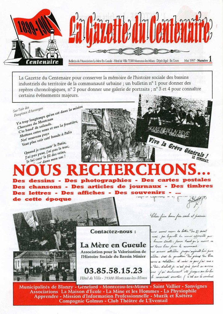 A l’origine, La Collection de La Mère En Gueule, partie intégrante de la maison d’édition associative Le Caractère En Marche de Génelard, nous a permis de rééditer trois ouvrages de référence sur l’histoire locale et depuis longtemps disparus des rayons des librairies : Au Pays Noir (Henri Besseige), Montceau-/es-Mines (Dr Laroche), La Grande Grève (Charles Malato).